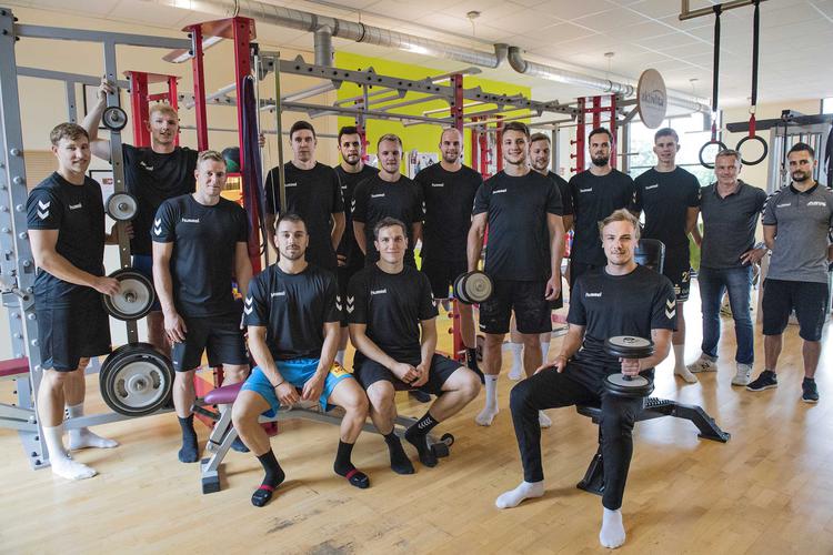 Starteten in die Vorbereitung 2017/2018: (stehend von links) Kapitän Jakob Schwabe, Julian Possehl, Fannar Thor Fridgeirsson, Gregor Lorger, Jan Brosch, Fabian Huesmann, Markus Fuchs, Christoph Neuhold, Julian Krieg, Felix Storbeck, Kim Voss-Fels, Kay Rothenpieler, Thomas Isdepski, (sitzend von links) Vyron Papadopoulos, Lars Gudat und Lukas Blohme. Es fehlen Björn Zintel und Vincent Saalmann. - Foto: Wegener